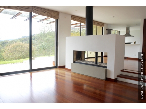 Pesos ColombianosHermosa casa en el exclusivo conjunto Arboretto a 20 minutos de Bogotá, antes del peaje de Patios. Cuenta con 380 mts distribuidos en 3 pisos. En el primer piso ingresamos a la zona social donde están sala con chimenea, comedor, estudio y cocina abierta, cuarto y baño de servicio y zona de ropas. Salida al hermoso, amplio y aprovechable jardín y pérgola en la terraza. En el segundo piso encontramos 3 habitaciones, una de ellas con walk, in closet, todas con baño y un estar de alcobas con chimenea. En el tercer piso está la cuarta habitación, con walk- in closet y terraza. La casa cuenta con una hermosa vista, techos altos, llena de luz. Conjunto con excelente seguridad, gimnasio, cancha de tennis, parque de niños, salón comunal, zona de mascotas, cancha múltiple y senderos para caminar en el lindo bosque.